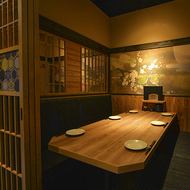 和風の雰囲気。古民家をイメージした店内は、畳と掘りごたつでゆったりとくつろげます。足を伸ばしてゆっくりとおくつろぎください。2~6名様用の個室テーブル席や2~42名様用の個室掘りごたつ席もあるので、デートで使っても◎大人数の歓送迎会などにも◎